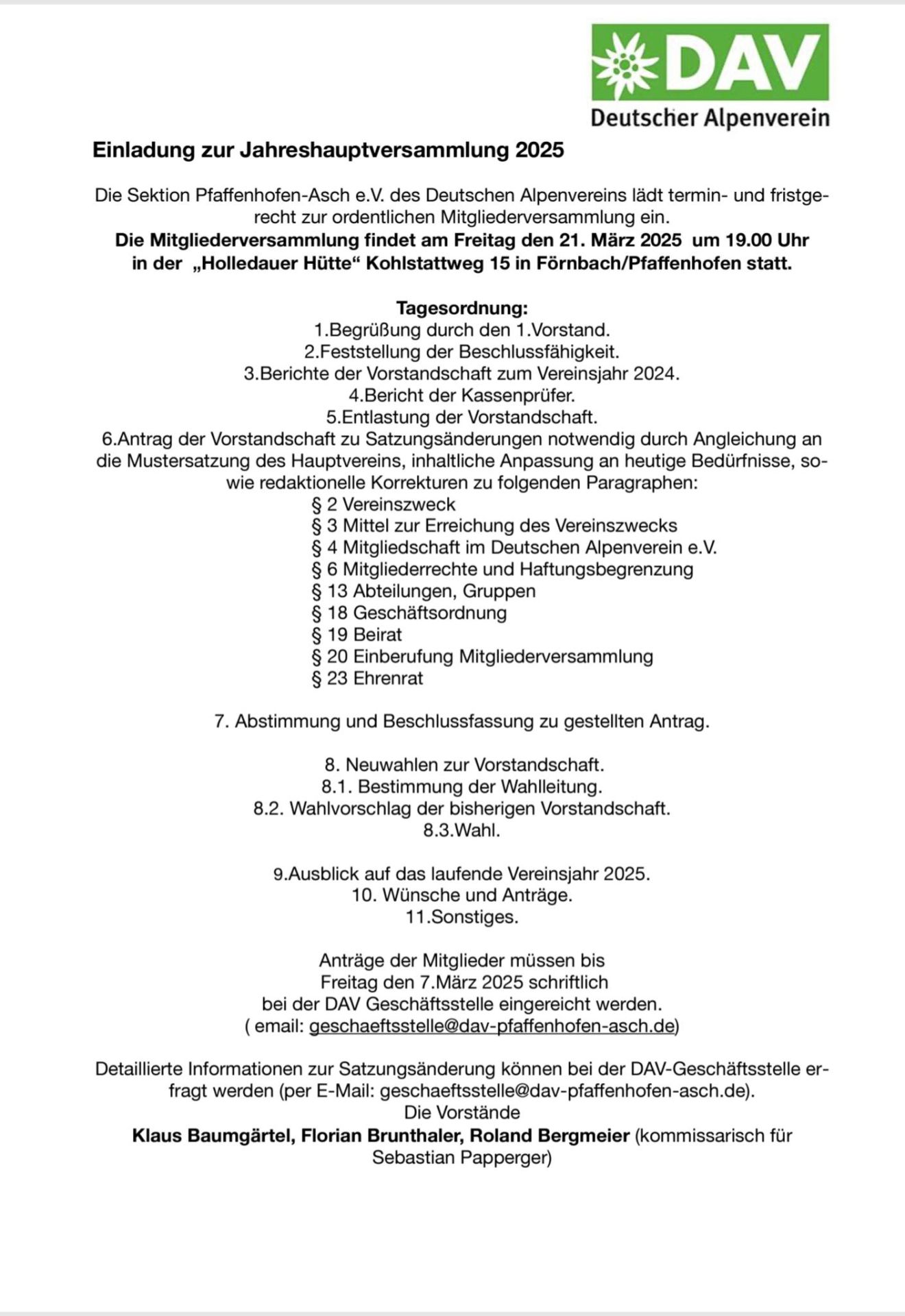 Einladung des Vorstandes zur Jahreshauptversammlung 2025