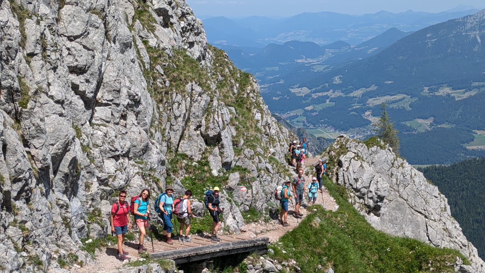 Auf das am Falzköpfl thronende Watzmannhaus führte bei traumhaftem Wetter die Bergtour der DAV-Sektion Pfaffenhofen-Asch unter Leitung von Mathilde Mader. 1300 hm mussten auf dem Weg , zuerst durch schattigen Wald, dann aussichtsreich mit Blick auf Watzmannfrau und Watzmannkinder zur 1930m hoch gelegenen Hütte bewältigt werden.