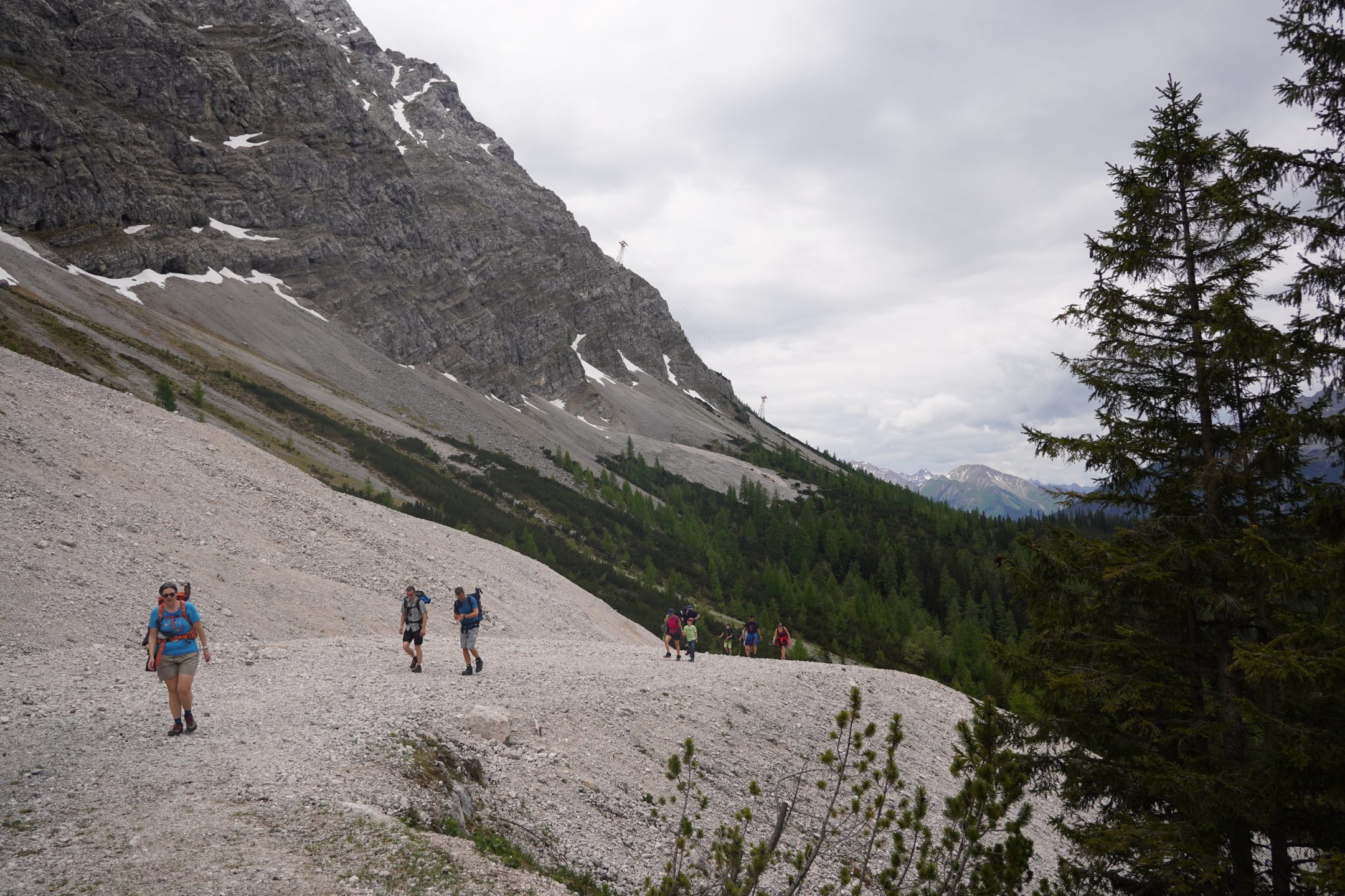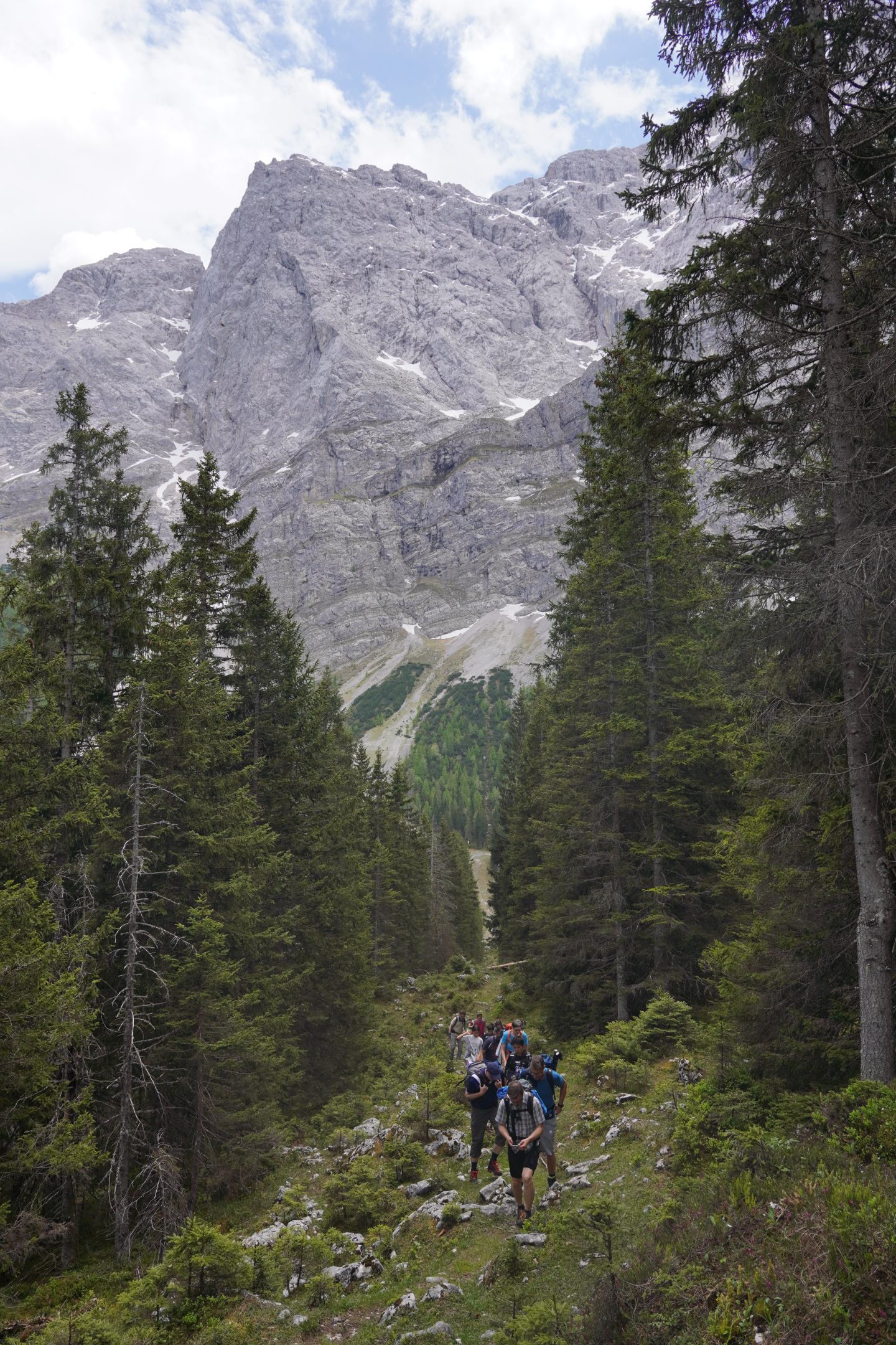 Bereits auf halber Strecke teilte sich die Gruppe dann in eine Hütten-Besucher-Gruppe, die über einen kleinen Umweg zur Hochthöre-Hütte weiterging, und eine Gruppe schnelleren Fußes, die bis zum Anfang des Riffelschartensteiges unterhalb der Zugspitze aufgestiegen ist:
