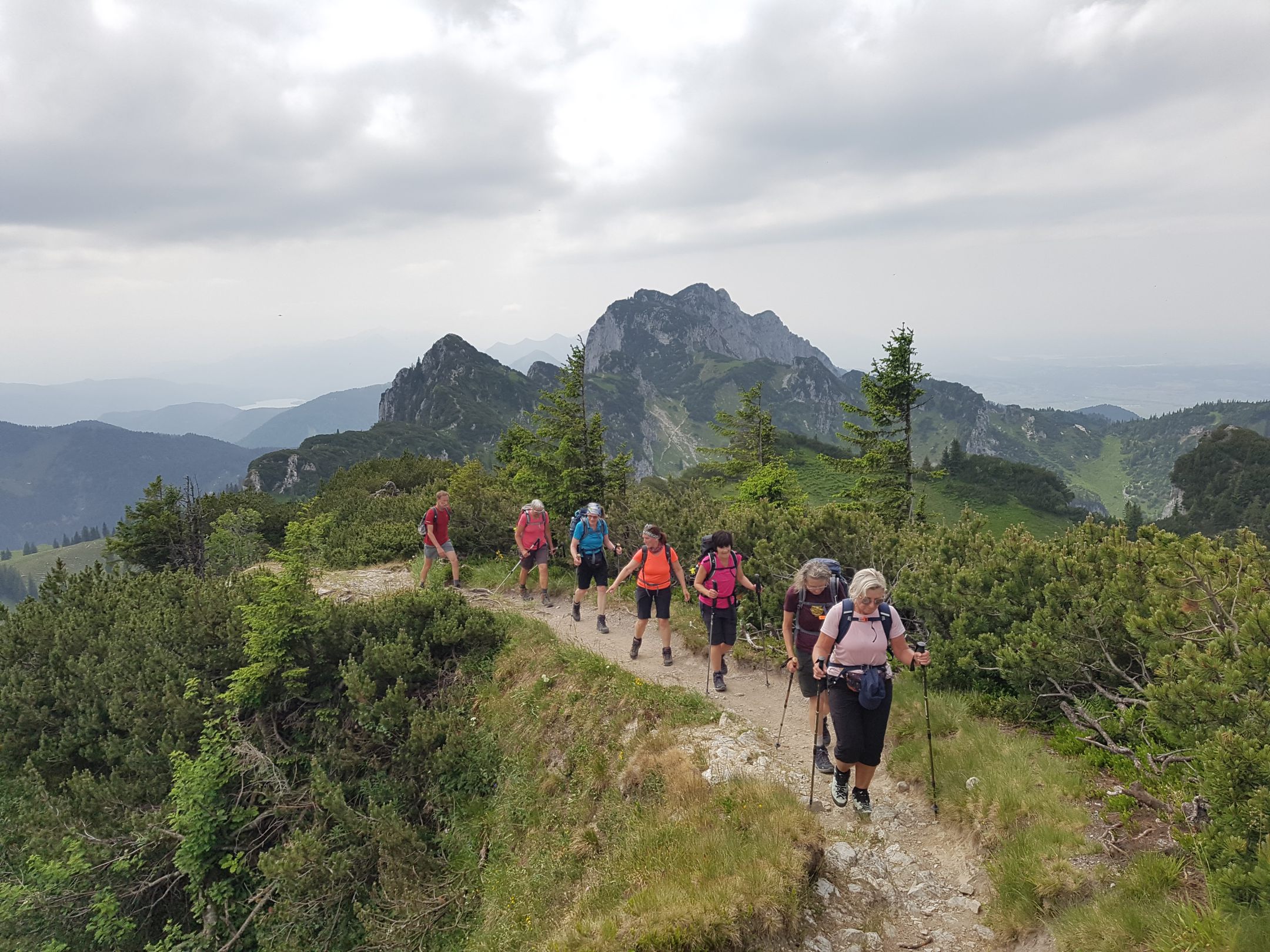 vom Brauneck über Kirchstein und Latschenköpfe zur Benediktenwand 1801 m. Bei dieser prachtvollen Gratwanderung genießt man anregende Fern- , Nah- und Tiefblicke. Auch Steinböcke konnte die Wandergruppe aus nächster Nähe beobachten.