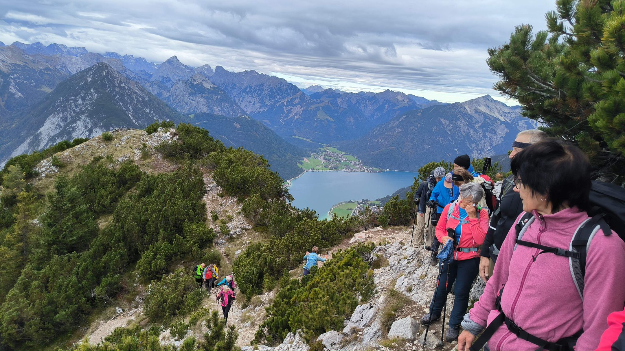 hatte die Wandergruppe der DAV Sektion Pfaffenhofen-Asch vom Gipfel des 1957 m hohen Ebner Jochs. Von Maurach ging es über den Hubersteig und Kirchenspitz 950 Höhemeter hinauf zum Gipfel. Der Abstieg führte über die schön gelegene Astenau Alpe und nach der Anstrengung genossen die Wanderer Kaffee und Kuchen auf der sonnigen Terrasse. Die Tour organisierte DAV-Wanderleiterin Mathilde Mader.