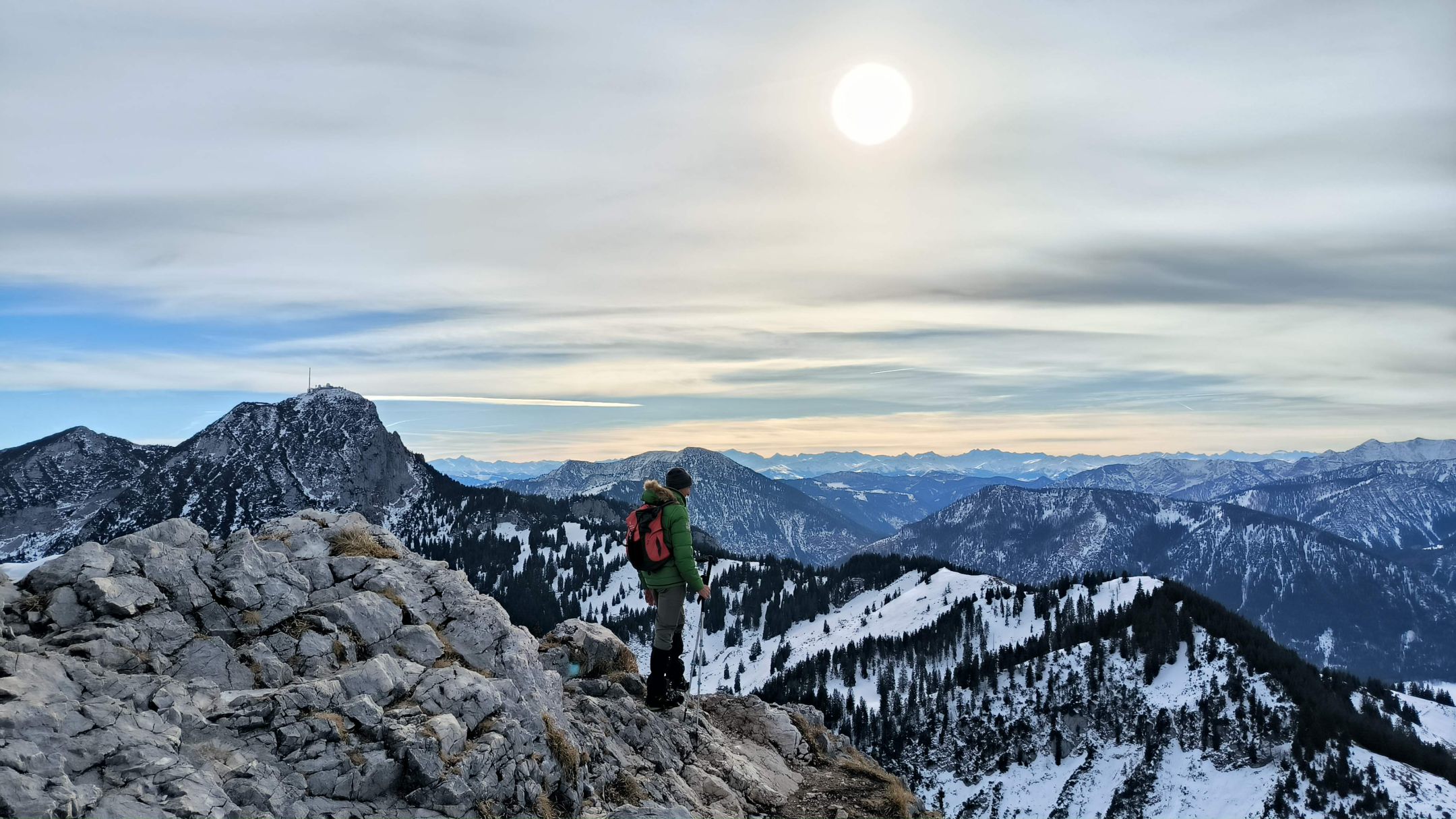 Bei dieser abwechslungsreichen Rundtour führte der Weg über die Bucheralm und den Westgipfel rund 800 Höhenmeter hinauf zum 1622 Meter hohen Breitenstein. Bei bestem Winterwetter bot sich am Gipfel eine beeindruckende Aussicht auf Wendelstein und Alpenhauptkamm. Der Abstieg erfolgte über die Hubertushütte und die Kesselalm. Organisiert wurde die rundum gelungene Tour von DAV Wanderleiterin Mathilde Mader.