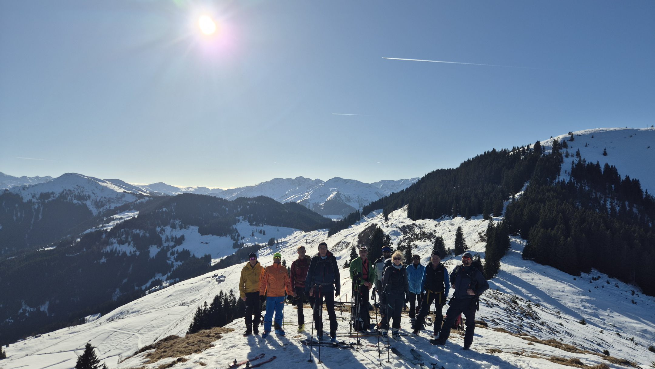 Vom 15. Bis 18. Januar ging es für eine Gruppe von neun Tourengehern und zwei Trainern ins Sellrain und weiter ins Navistal. Ziel des Wochenendes war es, trotz herausfordernder Schneesituation gute Bedingungen zu finden und gleichzeitig intensiv an der sicheren Tourenplanung im winterlichen Gelände zu arbeiten.