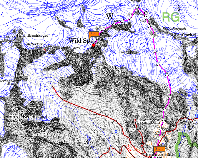 Somit gibt es derzeit von der Breslauer Hütte nur einen gangbaren Zustieg, der über den Rofenkarferner und das Rofenkarjoch führt.